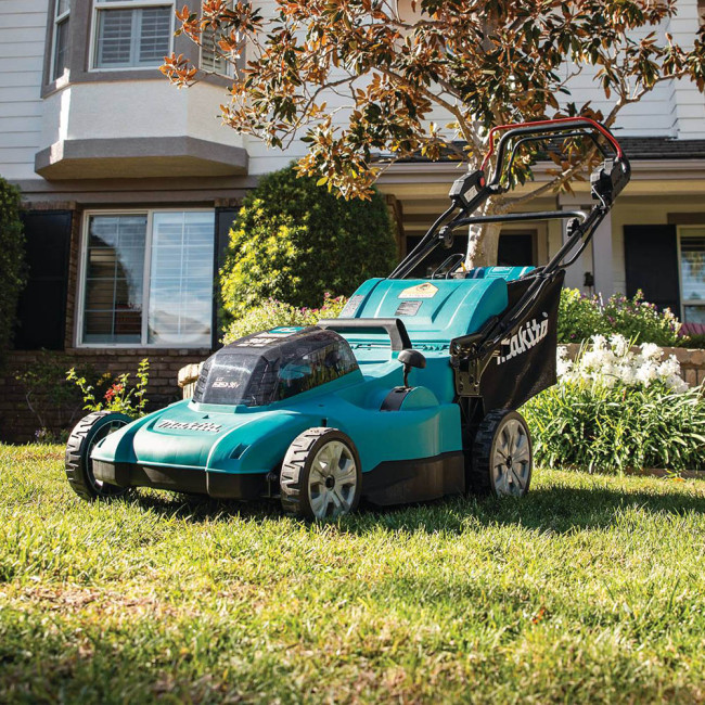 - Большие колеса с шарикоподшипниками обеспечивают более плавную работу на неровных или грязных газонах