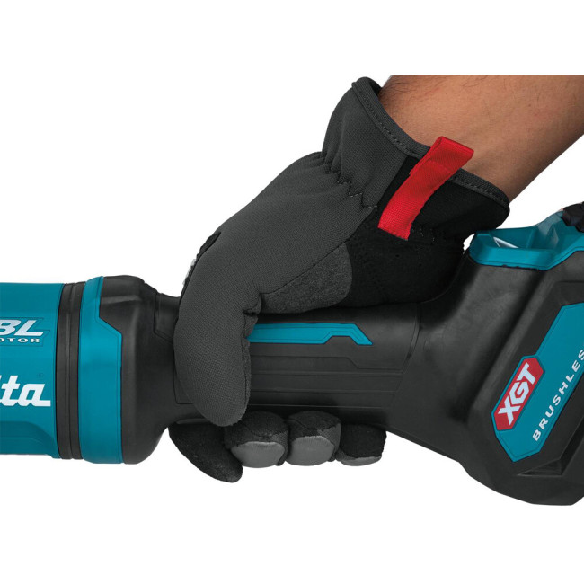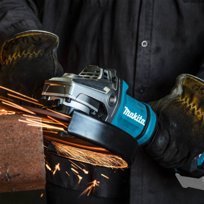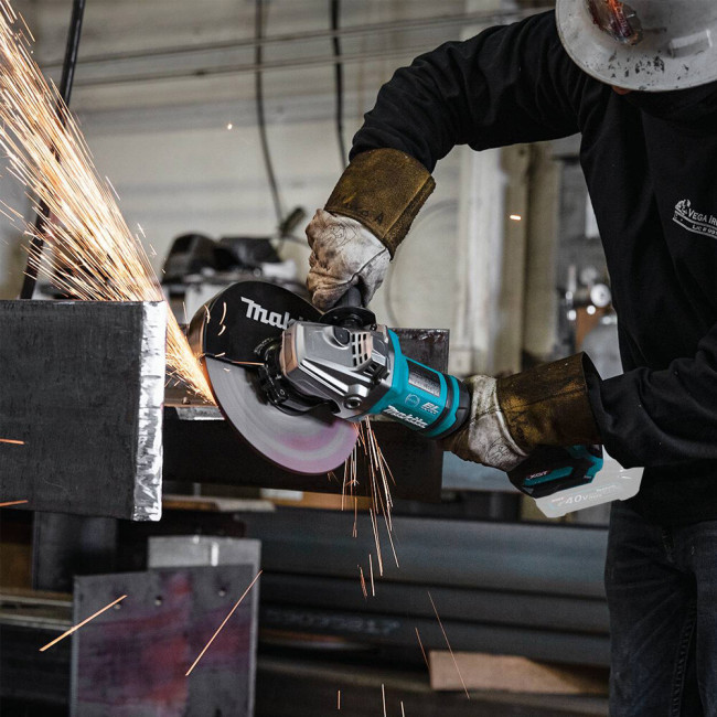 Шлифмашина угловая аккумуляторная MAKITA XGT GA038G T201 (GA038GT201) с бесщеточным двигателем, широкой клавишей для продолжительной тяжелой работы. Функция AWS для беспроводного подключения пылесоса.