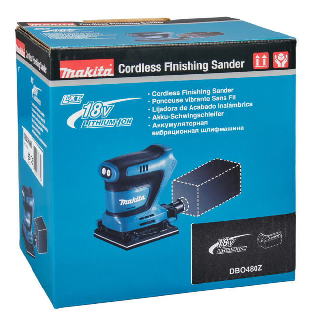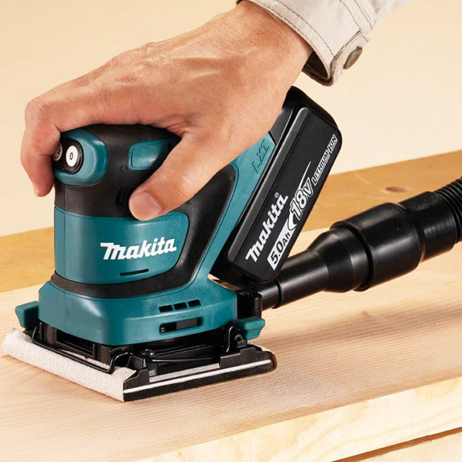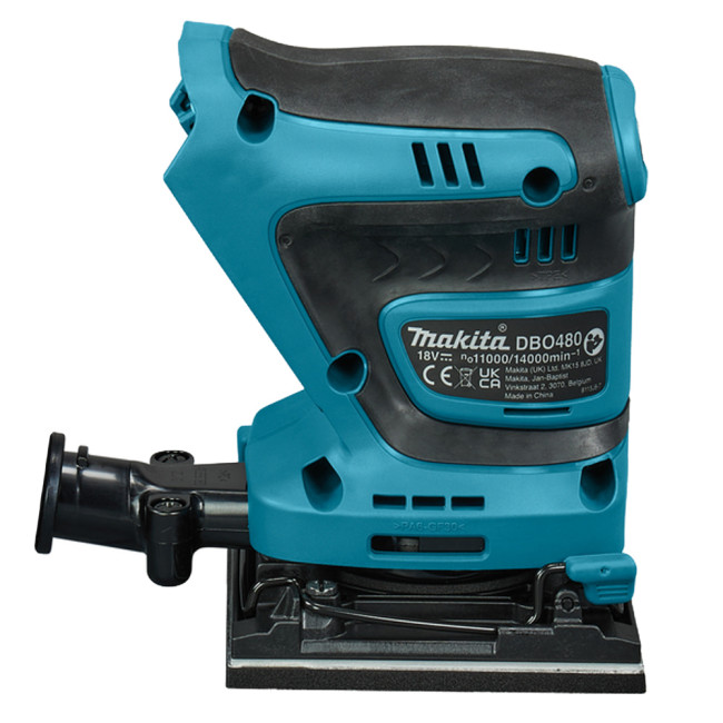 Вибрационная шлифмашина Makita DBO480Z предназначена для шлифования и выравнивания плоский поверхностей. Размер рабочей поверхности - 102х114 мм. Пылесборный мешок предназначен для удаления пыли и сосредоточения ее в одном месте. Возможно подключение пылесоса - для продолжительных непрерывных работ. Прорезиненные вставки на ручке снижают уровень вибрации.