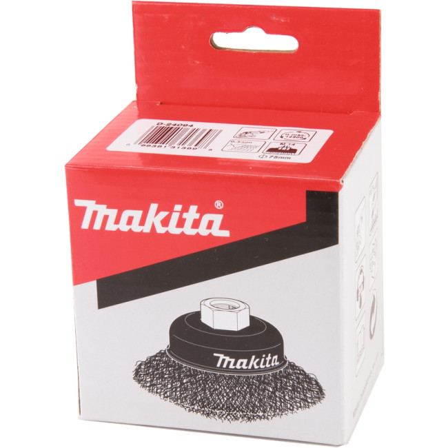 Чашечная щетка Makita D-24094 используется в угловых шлифовальных машинах Макита. Рабочая поверхность данной оснастки это стальная витая проволока диаметром 0,3 мм. Ее применяют для шлифования, матирования, полирования, а так же для удаления ржавчины и заусенцев с поверхностей.