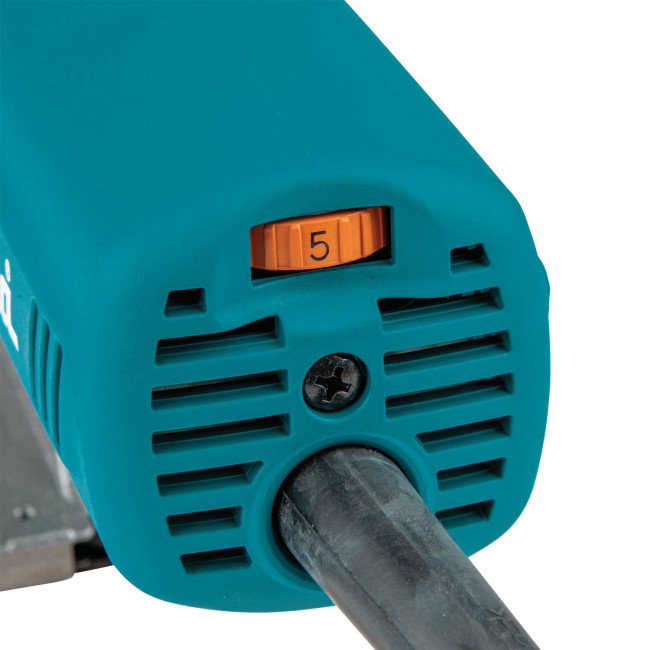 Лобзик Makita 4351FCTJ - инструмент профессионального уровня, обеспечивает качественное пиление различных материалов. Низкий уровень шума и вибрации увеличивает комфорт во время длительной работы. Электрический контроль скорости и встроенная светодиодная подсветка обеспечивают качественный прямой рез. На подошве находится специальная накладка - для защиты заготовки от царапин.