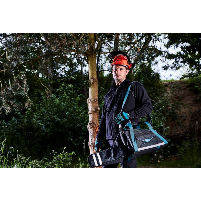 Сумка для цепных пил Makita E-05549 защищает бензопилу от повреждений во время транспортировки или хранения. Незаменима в лесу. Подходит для самых популярных бензопил. В комплект входит пластиковая основа, обеспечивающая устойчивость и легкую очистку.