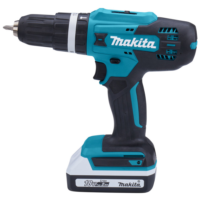 Аккумуляторная дрель-шуруповерт Makita HP488DWAE снабжена быстрозажимным патроном, что обеспечивает простую смену оснастки. В зависимости от плотности материала, при заворачивании и выворачивании шурупов, можно выбрать один из 16 режимов крутящего момента. Литий-ионная технология увеличивает срок службы инструмента и позволяет заряжать аккумулятор вне зависимости от степени его разрядки. Модель работает с батареями серии G.