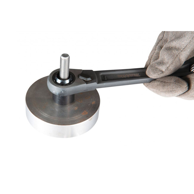 Строение шестигранного зажима основания уменьшает проскальзывание. Лазерная гравировка шкалы на корпусе инструмента для настройки ширины губок по размеру детали. Может работать с широким спектром типов проходных крепежа.