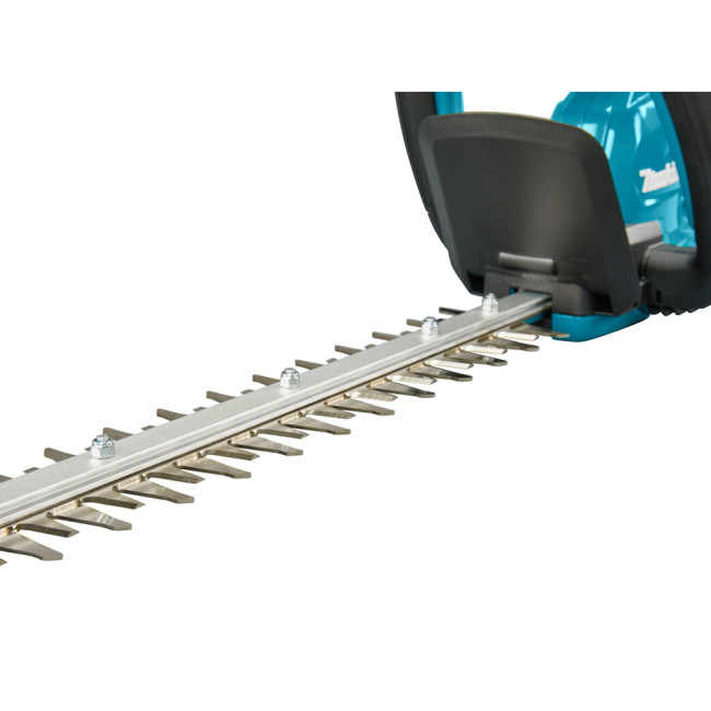 Аккумуляторный кусторез DUH606RT Makita - инструмент для формирования живой изгороди. Дизайн был переработан как снаружи, так и внутри. Ножницы оснащены бесщеточным двигателем, обеспечивающим более высокую производительность. Новая форма П-образной рукоятки обеспечивает удобный хват и позволяет комфортно нажимать кнопку под разными углами. Размер основного выключателя был увеличен для лучшего хвата и быстрого включения. Технология XPT позволяет использовать ножницы даже в дождь.