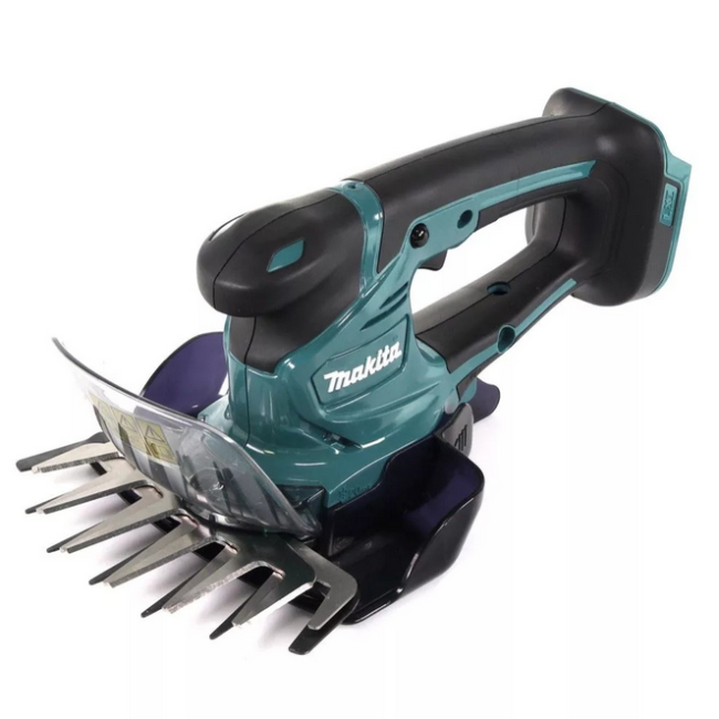 Аккумуляторные ножницы Makita DUM604Z предназначены для подрезания травы и мелкого кустарника. Прорезиненная рукоять обеспечивает надежный охват и не дает руке соскользнуть во время работы. Двойной нож позволяет срезать даже густую траву. Опорная рама защищает нож от повреждений, тем самым продлевает срок его службы.