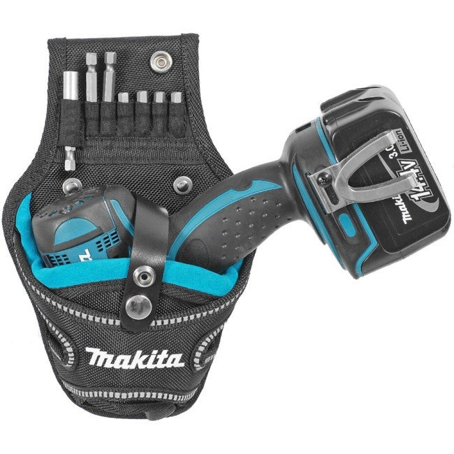 Поясная сумка Макита Р-71940 используется при работе с ударными шуруповертами для их переноски. Мелкие отделения предназначены для оснастки к шуруповерту. Все отделения уплотнены натуральной кожей для прочности и износостойкости. Дополнительный ремень для более надежной фиксации инструмента, позволяет выполнять различную работу не беспокоясь, что шуруповерт выпадет.