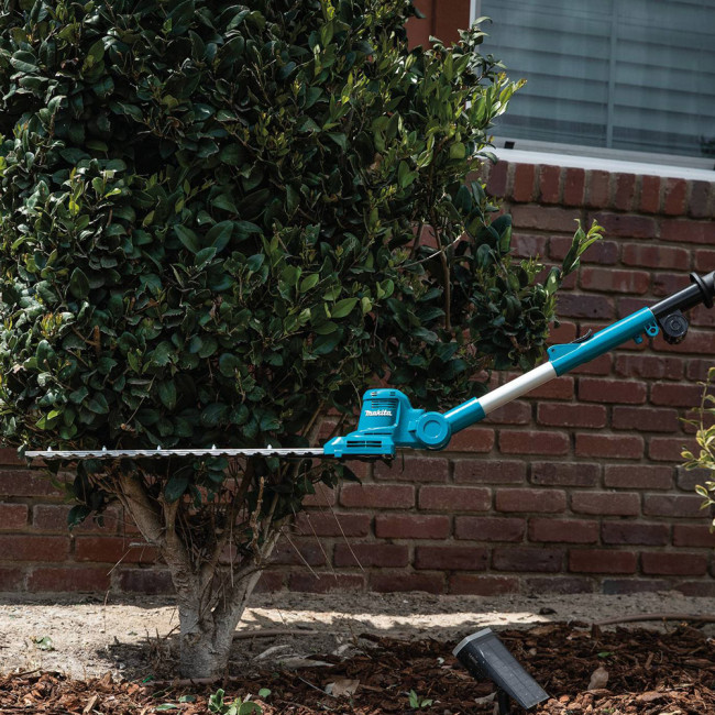 Makita представляет новинку, штанговый кусторез аккумуляторный UN460WDWA . Данная модель станет незаменимым помощником для ухода за живыми изгородями и кустарниками. Телескопическая штанга позволяет подравнять живые изгороди высотой до 4 м с учетом роста пользователя. Режущая поверхность имеет 10 положений фиксации для выбора оптимального угла реза. Ножи заточены с обеих сторон и имеют длину 460 мм.