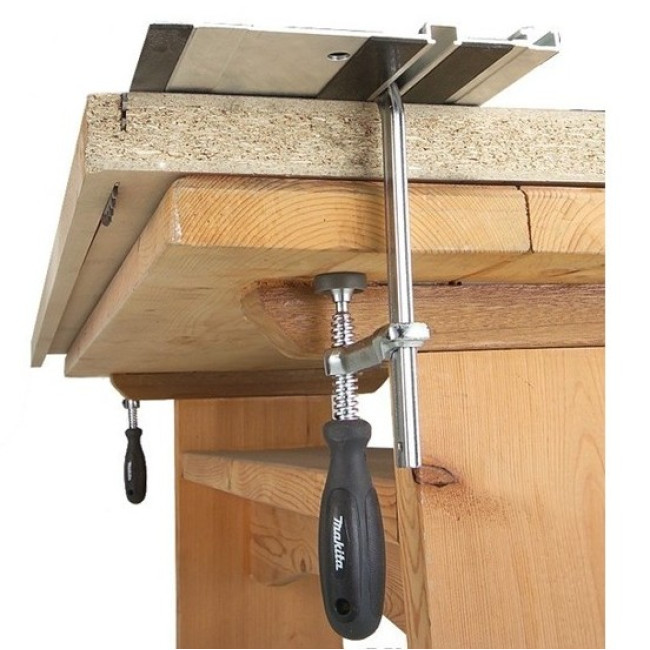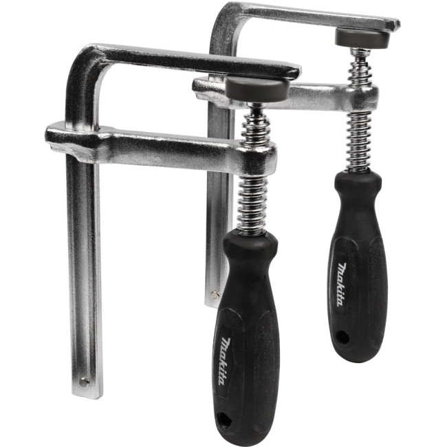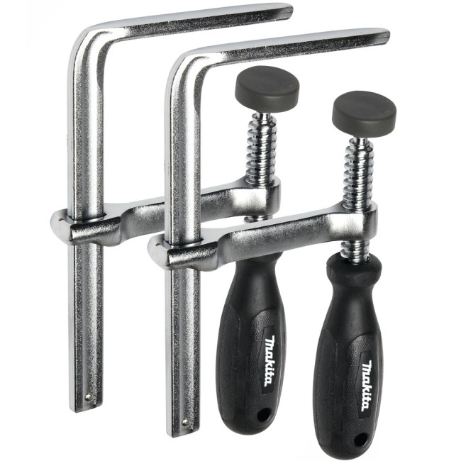 Струбцины Makita 194385-5 используются совместно с направляющей шиной с пилами SP6000, DSP600Z, DSP601ZU, CA5000XJ, 5103R, 5903R, 5603R, 5703R, 5705R, HS6100, HS7100 с лобзиками 4350CT, 4350FCT, 4351CT, 4351FCT и фрезерами 3612C, RP0900, RP0910, RP1800F, RP2300FC, RP2301FCX. Предназначены для четкой, надежной фиксации шины, предотвращая её смещение. Жесткая фиксация шины необходима для выполнения ровного реза, точной работы без брака. Ручки струбцин имеют грани, удобные для затягивания и откручивания. Струбцины Макита 194385-5 изготовлены из прочной стали.