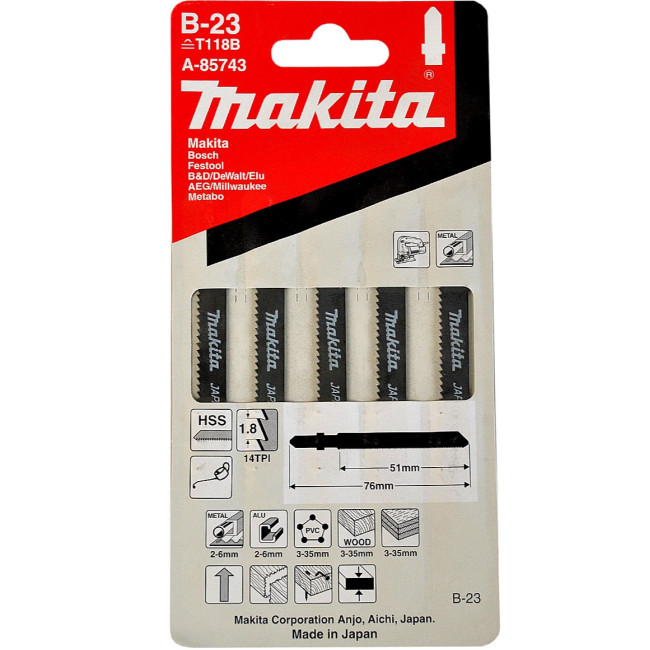 Пилка лобзиковая для металла HSS, 51 мм, 14TPI, В-23, 5 шт Makita A-85743