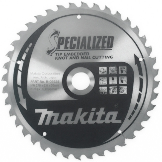Пильный диск для демонтажных работ Makita B-09525 (аналог: B-35324), специально предназначен для распила старых пиломатериалов и демонтажных работ. Диск обладает повышенной прочностью зубьев, так как зубья диска глубоко впаяны. Благодаря перечисленным свойствам диск обеспечен долговечностью, высокой производительностью и износостойкостью, и легко справится с гвоздями, оставшимися в древесине. Купить пильный диск для демонтажных работ Makita B-09525, очень просто, достаточно положить товар в «корзину» и оформить заказ или позвонить нам по телефону, так же можно для Вашего удобства, отправить заявку на Е-майл.