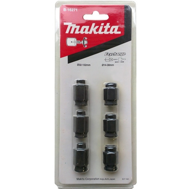 Набор адаптеров для стандартных коронок 14-30 мм (3 шт) и 32-152 мм (3 шт) Makita B-16271 предназначен для полых биметаллических пильных коронок серии Ezychange, выполнен из высококачественных материалов и имеет длительный срок службы. Сверлильные коронки Макита используются только в комплекте с адаптером.