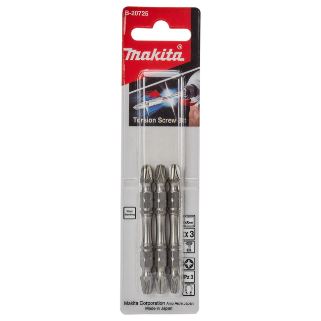 Насадка двусторонняя Silver Torsion, PZ3, 65 мм, E-form (MZ), 3 шт Makita B-20725
