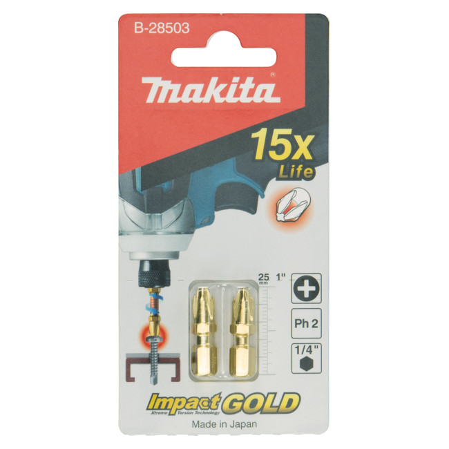 Крестовая бита Phillips PH2 из серии Makita XTT Impact Gold. Идеально подходит для ударных отверток благодаря чрезвычайно высокому крутящему моменту и идеальной подгонке. С головкой 1/4 "формы C длиной 25 мм. Две биты PH2 в упаковке.
