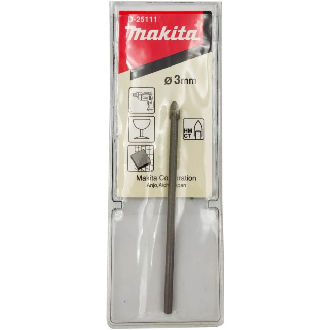 Сверло по стеклу 3x65 мм Makita D-25111 можно купить через корзину нашего магазина или заказать по телефону. Будем рады видеть Вас в нашем фирменном магазине на Машиностроителей 29.