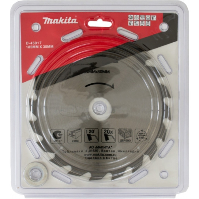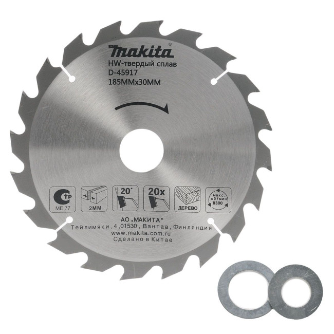 Пильный диск по дереву Стандарт Макита Д-45917 (аналог Д-09634), используется в работе с дисковыми пилами для распила древесины. Твердосплавные пластины на зубьях значительно продлевают ресурс работы диска. В комплекте с диском идут переходные кольца на 16 и 20 мм. В диске предусмотрены компенсационные прорези, благодаря которым достигается снижение уровня вибраций, шума и нагрева насадки при выполнении пропилов. Купить товар - Диск пильный по дереву, 185х2.0х30/20/16 мм, 20T, Standard Makita D-45917 очень просто, достаточно положить товар в «корзину» и оформить заказ или позвонить нам по телефону, так же можно для Вашего удобства, отправить заявку на Е-майл.