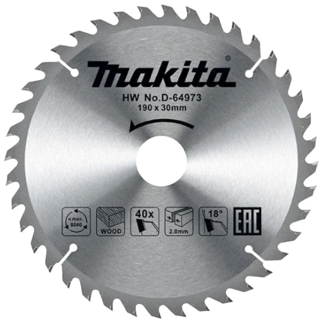 Пильный диск по дереву Standart 190x2.0x30 мм, 40T Makita D-64973