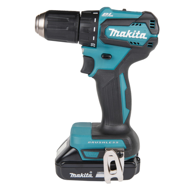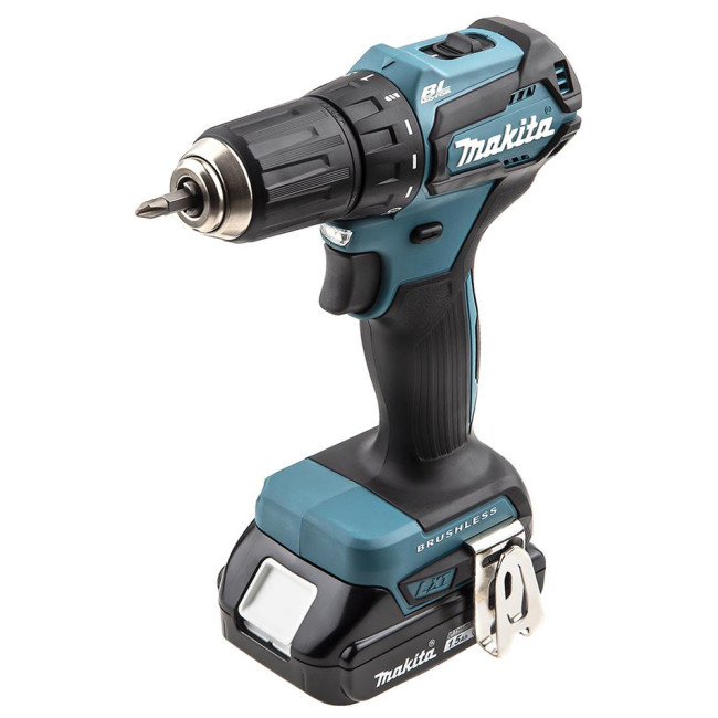 Дрель-шуруповерт аккумуляторная DDF483SYE имеет удобную эргономичную рукоятку и курковый переключатель. Это обеспечивает комфорт и удобство при длительной работе с инструментом. Быстрозажимной патрон обеспечивает легкую смену биты одной рукой. Диаметр зажимного патрона: 1,5 - 13 мм. Инструмент оборудован встроенной светодиодной подсветкой с функциями предварительного свечения и послесвечения.