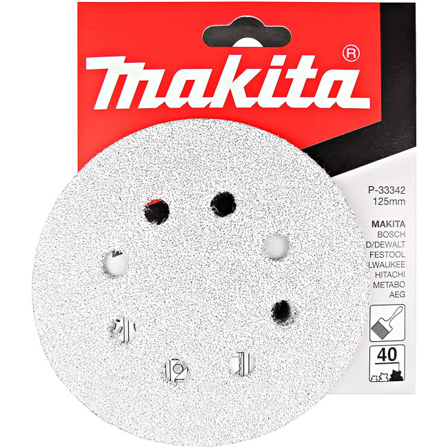 Диск шлифовальный 8 отверстий белый D125 мм, K40, 10 шт. Makita P-33342