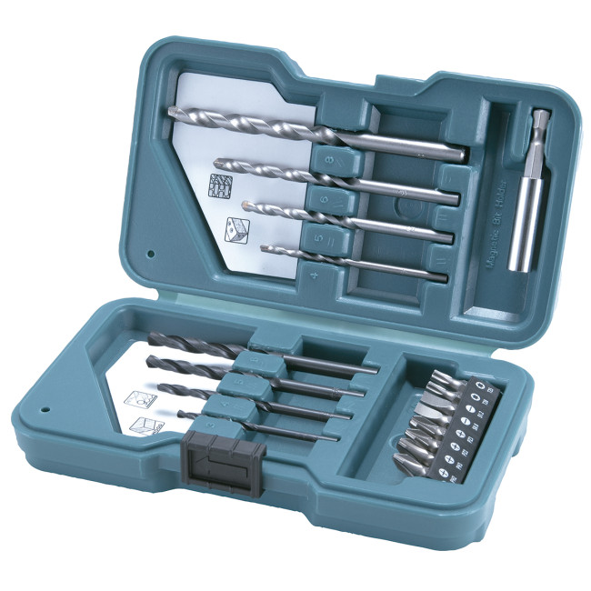 Набор бит и сверл состоит из 17 предметов в удобной пластиковом футляре.
