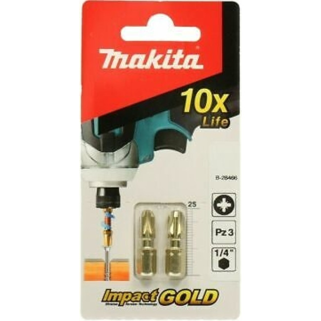 Pozidriv биты PZ3 из серии Makita XTT Impact Gold. Идеально подходит для ударных гайковертов благодаря чрезвычайно высокому крутящему моменту и идеальной подгонке. С головкой 1/4 "формы C длиной 25 мм. Две биты PZ3 в упаковке.