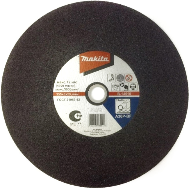 Абразивный отрезной диск для стали A36P, 355х3х25,4 мм, 5 шт. Makita B-14510-5 можно купить через корзину нашего магазина или заказать по телефону. Будем рады видеть Вас в нашем фирменном магазине на Машиностроителей 29.