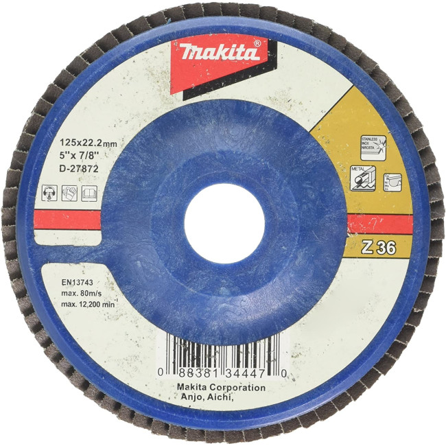 Лепестковый шлифовальный диск Z36, 125 мм, нейлон, плоский Makita D-27872