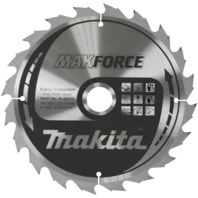 Диск пильный для дерева Makforce, HW, 235x2.3x30 мм, 24T, 15G, ATAF Makita B-43717