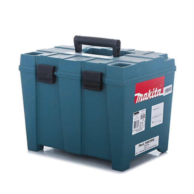 Дисковая пила Makita 5903 RK - инструмент мощностью 2 кВт, предназначенный для точного и качественного распила изделий из древесины и пластика толщиной до 85 мм. Возможен рез под углом до 45 градусов. Расклинивающий нож предотвращает заклинивание диска во время работы. Инструмент оснащен блокировкой пуска - для защиты от непреднамеренного включения пилы. Для удобства транспортировки и хранения пила комплектуется чемоданом. Модель может работать с направляющей шиной. Для ее установки нужно использовать адаптер 192506-3, который приобретается отдельно. Дополнительная рукоятка дисковой пилы Makita 5903 RK обеспечивает надежный захват и позволяет работать двумя руками. Cистема пылеудаления с функцией подключения пылесоса позволяет хорошо видеть линию реза, сохранить чистоту рабочего места и защитить дыхательные пути оператора от мелкой стружки. Блокировка вала - для быстрой и безопасной смены пильного диска.