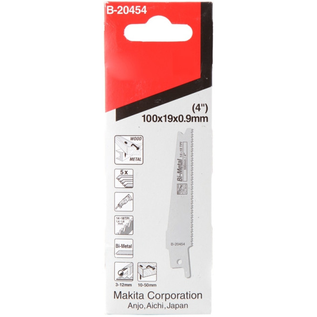 Сабельное полотно для дерева и металла BiM 100x19x0.9 мм, 14-18TPI, 5 шт Makita B-20454