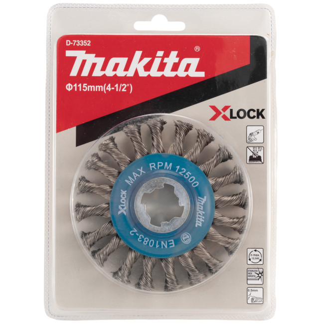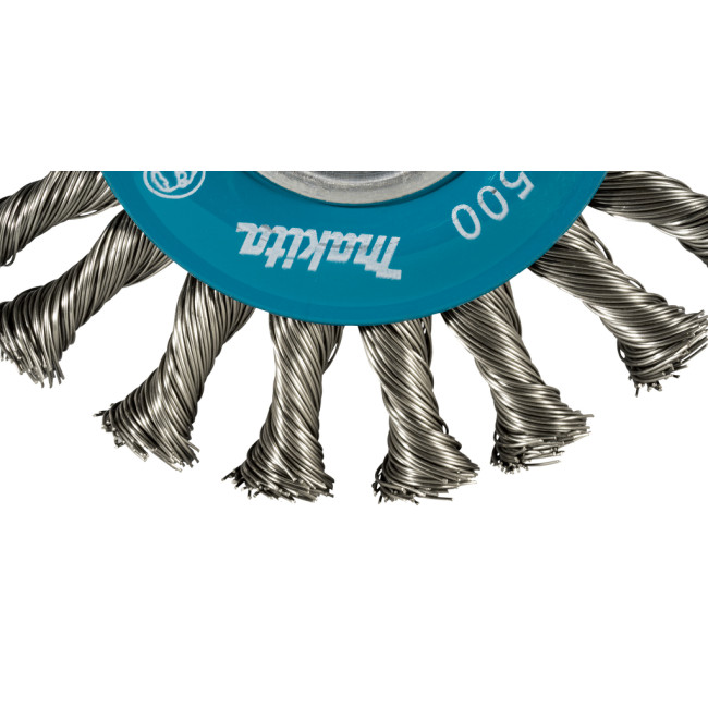 Круглая щетка Makita 115 мм со скрученной проволокой из нержавеющей стали с толстыми узлами диаметром 0,5 мм с соединением X-LOCK. Для использования на больших площадях, чем круглые кисти с мелкими узлами D-73411 и D-73368. Подходит только для машин с соединением X-LOCK.