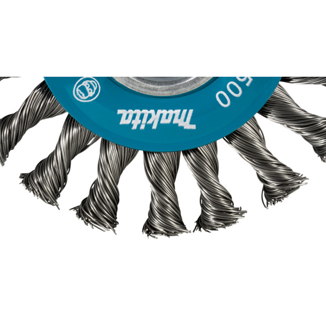 Круглая щетка Makita 115 мм со скрученной толстой узловатой стальной проволокой диаметром 0,5 мм с соединением X-LOCK. Для использования на больших площадях, чем круглые кисти с мелкими узлами D-73411 и D-73368. Подходит только для машин с соединением X-LOCK.