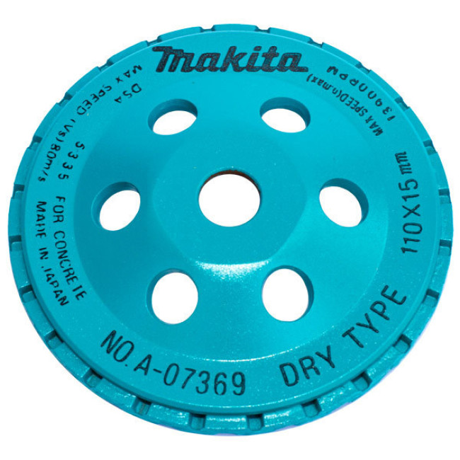 Тарельчатый шлифовальный диск Makita A-07369 для грубой шлифовки бетона совместно с машиной Makita PC1100. Диаметр диска составляет 110 мм, а диаметр посадочного отверстия — 15 мм. Купить товар - Алмазный тарельчатый диск, 110x15 мм, грубая шлифовка для PC1100 Makita A-07369 очень просто, достаточно положить товар в «корзину» и оформить заказ или позвонить нам по телефону, так же можно для Вашего удобства, отправить заявку на Е-майл.